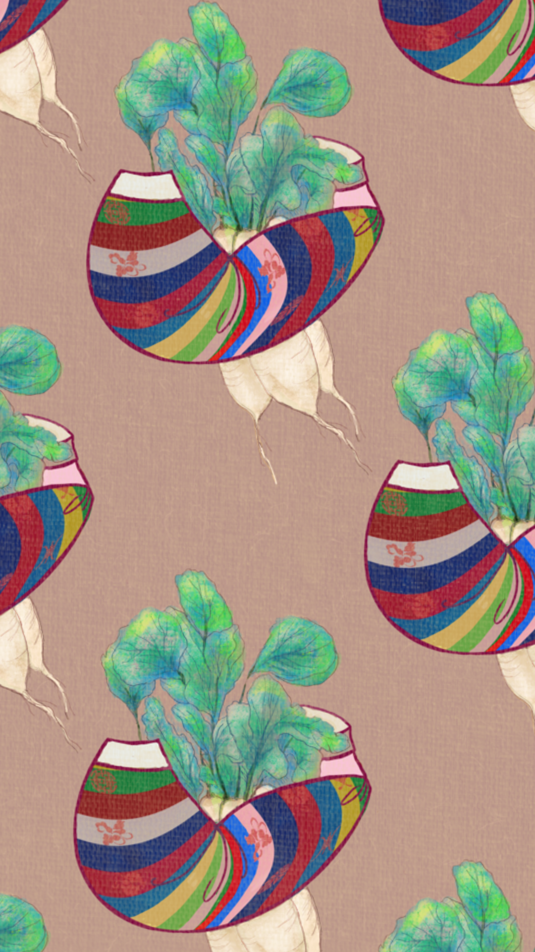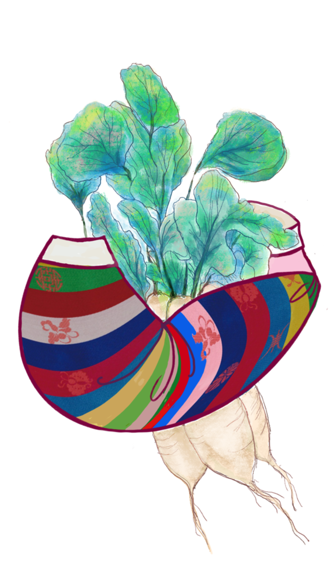 embracing radish and pear like a bundle of flowers.