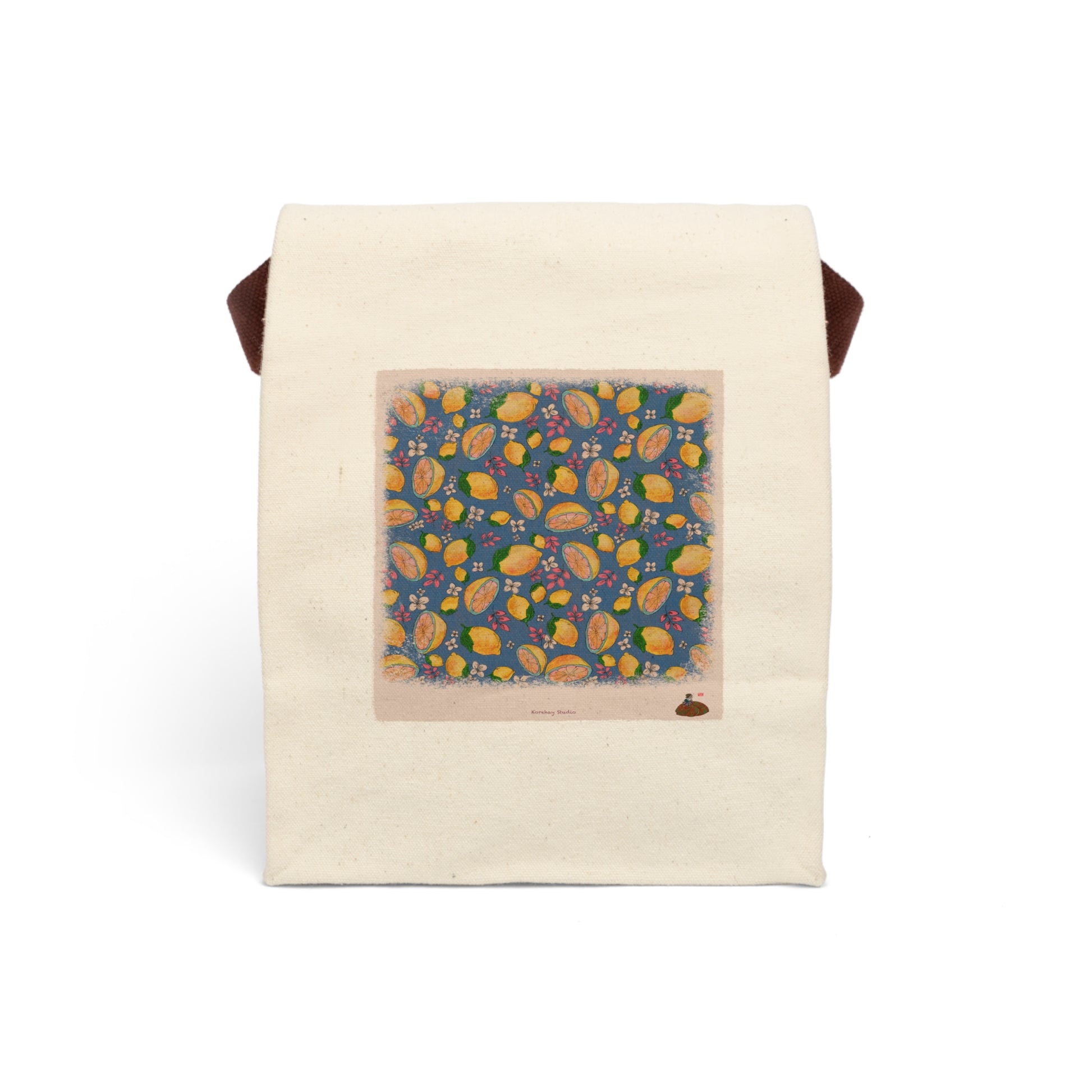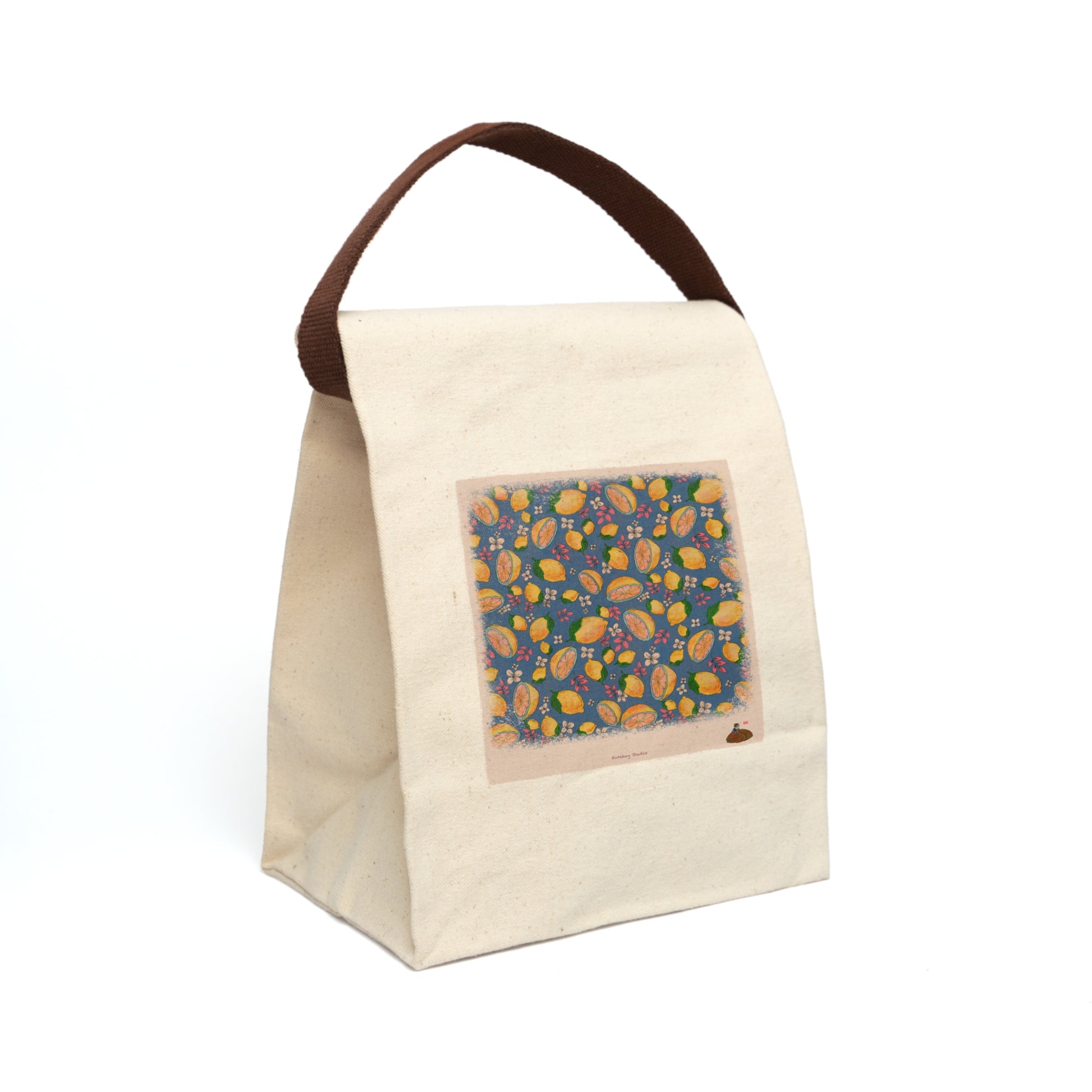 Introducing the most stylish lunch bag in every school or office cafeteria. Its top rolls down and closes with a hook and loop tape, creating a paper lunch bag look. Made from 100% cotton canvas, it's durable and will last for ages. The strap handle makes it easy to carry around wherever you go. This bag comes in one size – 12.5" x 8" x 5.5" (20.3cm x 31.8cm x 14cm) – perfect for snacks and three-course meals.